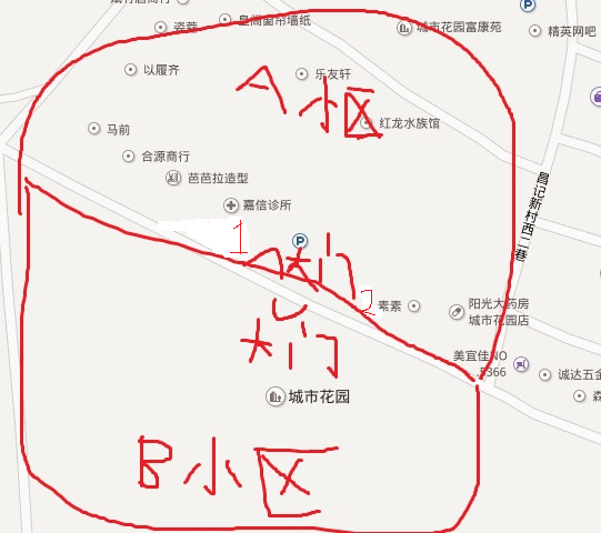 A小區(qū)出來(lái)第一個(gè)鋪面就是我的!B小區(qū)在對(duì)面要過(guò)馬路大概十米吧!但是還沒(méi)交樓的要8月份才交樓!不過(guò)B小區(qū)走到我的位置要比2號(hào)位要近!到美宜佳就要走40多米了!
