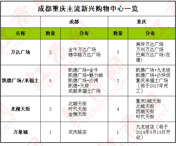 | 成都重慶核心商場進(jìn)駐指南簡表一覽 |