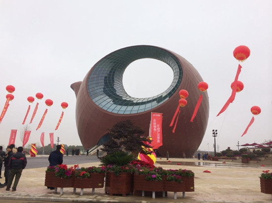 圓滾滾的外形,向內(nèi)凹起的弧度曲線,中間被掏空,建筑的中上部還有一只“撅”起的“嘴巴”,這是位于無(wú)錫市濱湖區(qū)的萬(wàn)達(dá)文化旅游城展示中心造型。記者17日獲悉,這個(gè)酷似“大茶壺”的造型涉嫌侵犯中國(guó)工藝美術(shù)大師汪寅仙的紫砂作品《神鳥(niǎo)出林》壺的著作權(quán),目前汪寅仙已委托律師向無(wú)錫市中級(jí)人民法院正式提交訴狀。據(jù)悉,建筑物因“復(fù)制”紫砂工藝作品而產(chǎn)生跨界著作權(quán)糾紛,這在國(guó)內(nèi)尚屬首例。