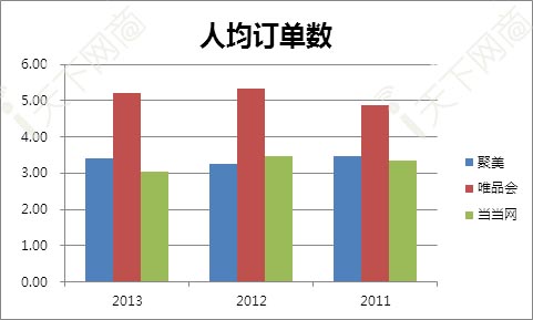 聚美的人均年訂單數(shù)長期保持在3.3單左右,該數(shù)值遠低于唯品會超過5次以上的人均消費頻率,與當當網(wǎng)相當。不過,不能忽視的是:當當網(wǎng)和唯品會均是全面百貨化的平臺,當當網(wǎng)去年的百貨銷售占比近半,而唯品會的服裝銷售占比更是只有45%。聚美的閃購業(yè)務雖然涉及到大量非化妝品品類,但它整個平臺仍以化妝品銷售為主(參考聚美自營物流中心處理的訂單數(shù)占比)。以單一品類支撐起與綜合電商平臺相當?shù)挠脩艋钴S度,說明聚美用戶的活躍度很高。