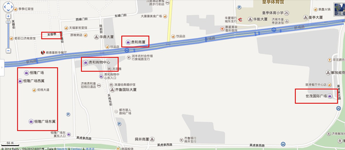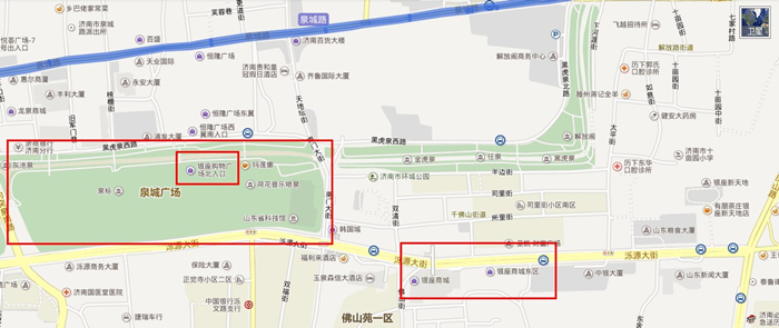 濟(jì)南恒隆廣場(chǎng),對(duì)面是芙蓉街,東面是貴和購(gòu)物中心(貴和二期)
