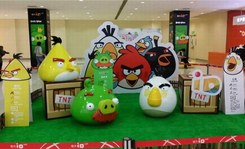 (長沙一商場五一節(jié)推出"憤怒的小鳥主題特展",吸引不少人圍觀。圖/記者 張莉)
