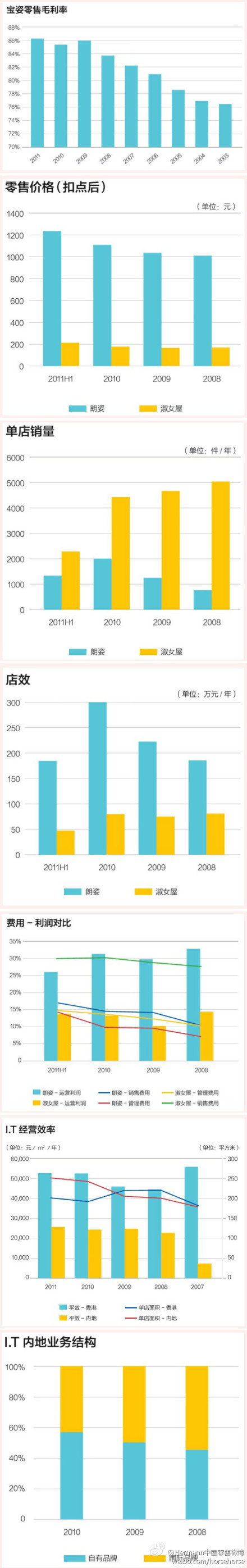 寶姿、朗姿和I.T、淑女屋等傳統(tǒng)女裝分析的很到位。感恩樓主的奉獻精神~!