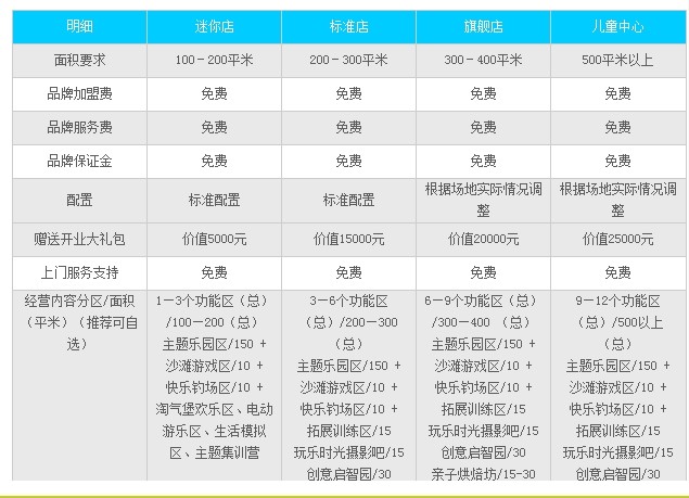 有實(shí)力才敢承諾,有信心才敢于承擔(dān),有胸懷才敢于分享,有誠意才敢于合作。品牌榮譽(yù)共享、媒體廣告推廣、產(chǎn)品升級(jí)支持。區(qū)域壟斷保護(hù)、風(fēng)險(xiǎn)保證扶持、免費(fèi)培新支持、完善售后服務(wù)——星期六室內(nèi)兒童樂園七大扶持,讓創(chuàng)業(yè)者說:成功so easy!