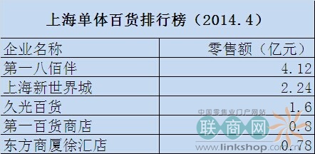 上海百貨業(yè)單體銷售排行榜 第一八佰伴居首