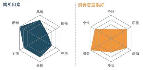 這類消費者多是數(shù)碼和電子產(chǎn)品的擁躉,屬于數(shù)字化新生一代。為了彰顯個性,他們比任何群體都更關(guān)注各類精品,因此,產(chǎn)品的外觀和特性順理成章地成為他們的首要關(guān)注點,質(zhì)量和價格則都在其次。他們往往是網(wǎng)絡(luò)消費達人,使用多種終端設(shè)備,并深受在線產(chǎn)品信息和社交網(wǎng)站評論的影響。