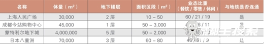 從RET睿意德中國(guó)商業(yè)地產(chǎn)研究中心提供的數(shù)據(jù)看到,不論是蒙特利爾地下城還是日本八重洲,以及國(guó)內(nèi)的上海人民廣場(chǎng)、成都今站購物中心,在業(yè)態(tài)比重劃分上,餐飲業(yè)態(tài)都占到了40%以上,而零售業(yè)態(tài)雖占比較大,但分布比例幅度不甚均衡。