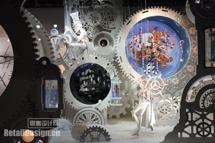 近期,梅西百貨的櫥窗總監(jiān)Paul Olszewski為梅西百貨設(shè)計(jì)了六個(gè)以老式蒸汽朋克為主題元素的的現(xiàn)代風(fēng)格櫥窗。其結(jié)合了現(xiàn)代技術(shù)與傳統(tǒng)動(dòng)畫,并搭配純白色的服裝和人物,以突出五顏六色的流行飾品。一起來(lái)欣賞吧!