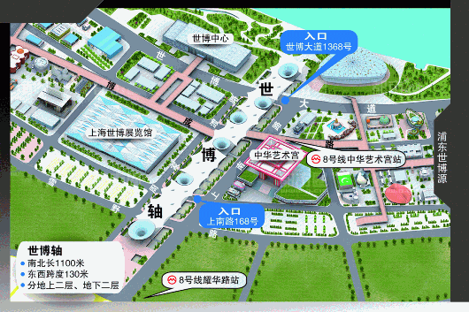 世博源附近有兩個(gè)地鐵站,一個(gè)是地鐵8號(hào)線經(jīng)過的中華藝術(shù)館站,另一個(gè)是地鐵7號(hào)線和地鐵8號(hào)線換乘的耀華路站,兩個(gè)地鐵站距項(xiàng)目都在1000米內(nèi),但都沒有和地鐵站從地下“接軌”。