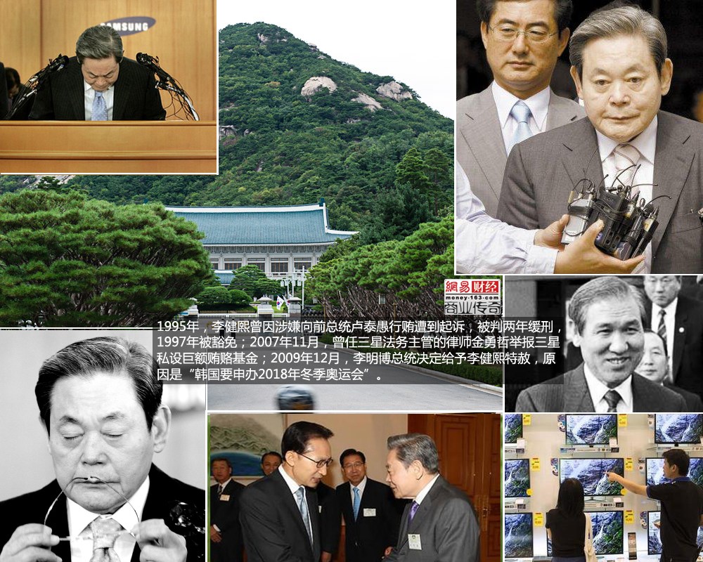 1995年,李健熙曾因涉嫌向前總統(tǒng)盧泰愚行賄遭到起訴,被判兩年緩刑,1997年被豁免;2005年,李健熙又因卷入賄賂韓國國家黨前主席李會昌事件避居海外;2007年11月,曾任三星法務(wù)主管的律師金勇哲舉報三星私設(shè)巨額賄賂基金;2008年4月22日,李健熙迫于社會壓力引咎辭職。但是2009年12月,李明博總統(tǒng)決定給予李健熙特赦,原因是“韓國要申辦2018年冬季奧運,李健熙是國際奧委會委員,為了整體國家利益,給予特赦。所以即使有腐敗,政治因素都可能為三星服務(wù),可見誰想撼動三星在韓國的地位那也是不可能的。