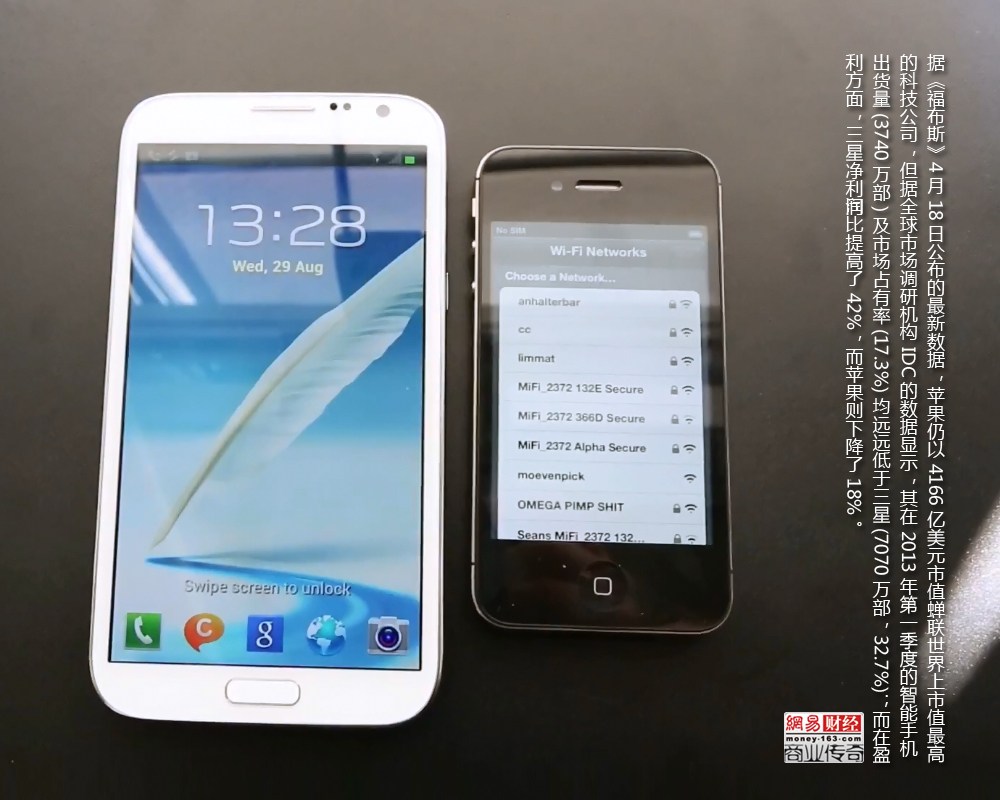 蘋果公司真正的遇到了他的挑戰(zhàn)者——三星,據(jù)《福布斯》4月18日公布的最新數(shù)據(jù),蘋果仍以4166億美元市值蟬聯(lián)世界上市值最高的科技公司,但據(jù)全球市場調(diào)研機構(gòu)IDC的數(shù)據(jù)顯示,其在2013年第一季度的智能手機出貨量(3740萬部)及市場占有率(17.3%)均遠遠低于三星(7070萬部,32.7%);而在盈利方面,三星凈利潤同比提高了42%,而蘋果則下降了18%。