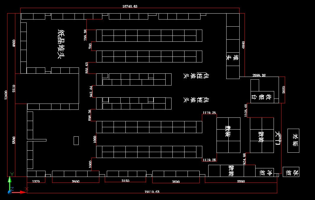 3、現(xiàn)在擺放的貨架不是很好,建議橫過(guò)來(lái),整體賣場(chǎng)分為上下兩個(gè)部分,將中間設(shè)置一條主通道,作為促銷堆頭通道;