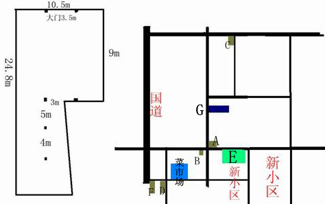 ABCDEF均為超市,A100平方,日營(yíng)業(yè)額8000左右,臘月二十九最高賣(mài)12萬(wàn),夫妻超市營(yíng)業(yè)8年了。B 為我自己現(xiàn)有的小超市50平方,老婆家的房子,兩間門(mén)面,煙酒禮盒乳品居多,日營(yíng)業(yè)額4000,臘月29最高銷(xiāo)售9萬(wàn)。C店150平方,營(yíng)業(yè)額和B店相似。D店主打批發(fā),日營(yíng)業(yè)額7000左右。F店自帶冷庫(kù)批發(fā),夏天能買(mǎi)到1萬(wàn)多一天。E店為全鎮(zhèn)最大店,1600平方單層,80萬(wàn)房租一年,為市內(nèi)連鎖超市,價(jià)格偏高,日銷(xiāo)售額1萬(wàn)左右,臘月份最高賣(mài)30萬(wàn)一天。 G是我自己家房產(chǎn),面積有200平方多一點(diǎn)。想自己做一個(gè)中型超市。但是感覺(jué)房型太丑,比較迷茫,求各位大哥指導(dǎo)。G與B 相距200米。