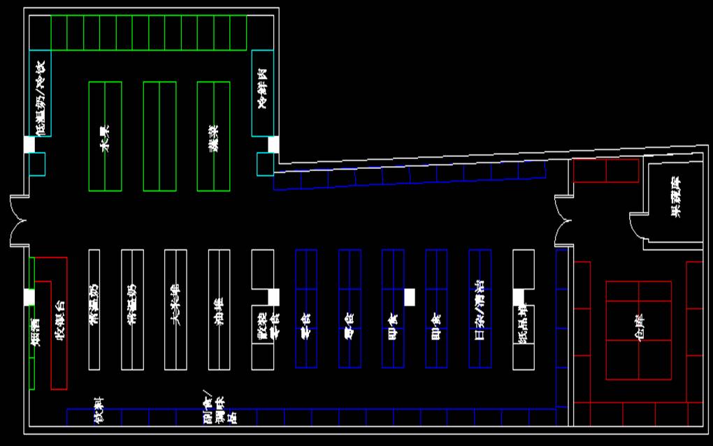 生鮮品類(lèi)是提高聚客能力的重要類(lèi)別,你這個(gè)商圈目前僅E店在經(jīng)營(yíng),如果你的G店經(jīng)營(yíng)了,將會(huì)有效爭(zhēng)取它的一部分客流,至少G店到國(guó)道之間的客戶(hù)可以爭(zhēng)取一大部分。而且,生鮮品類(lèi)做得好的話,利潤(rùn)也不低。為了降低果蔬商品損耗,我在倉(cāng)庫(kù)內(nèi)規(guī)劃了一個(gè)小小的果蔬冷藏庫(kù)。這是提高商品鮮度的保證。(倉(cāng)庫(kù)內(nèi)靠墻為承重架,中間為棧板堆貨)