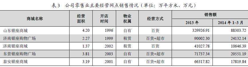 36 威海銀座商城 3.41 2012 自有 百貨+超市 11,325.99 8,412.39