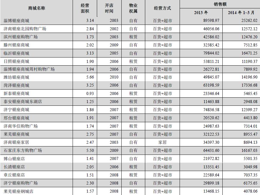 12 淄博銀座商城周村 1.94 2006 自有 百貨+超市 25,356.56 14,073.64