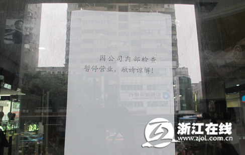 中都百貨玻璃窗上粘貼的暫停營業(yè)通知 浙江在線記者 陳佳攝