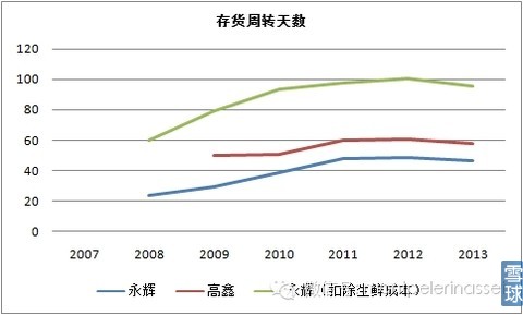 飛牛網(wǎng)最大的優(yōu)勢是依托大潤發(fā)供應(yīng)商資源,毛利率能做到20%,這對1號店等網(wǎng)站來說難度是很大的。目前客單價200元,算是達(dá)到了電商的基本水平(根據(jù)1號店,一般能有200-300甚至400元)。由于入場晚,吸引和留住用戶的難度加大,盈利水平取決于未來用戶發(fā)展情況。公司的商超經(jīng)營能力得到事實檢驗,雖然有同店增速下降、坪效下降等問題,但這是由于受宏觀環(huán)境、電商沖擊等因素影響,現(xiàn)在公司在中國市占率14%、單店收入2.9億,位居行業(yè)第一。A股的永輝超市很有特色,利用福建農(nóng)改超的機遇做強了生鮮主業(yè),再用生鮮的人流帶動其他商品的銷售。生鮮高周轉(zhuǎn)低損耗是永輝的生存法寶,而此類商品難以用信息技術(shù)來提升運營效率,因此永輝員工數(shù)是高鑫的44%,而收入是高鑫的35%,人均效率偏低。高鑫零售整體年末存貨周轉(zhuǎn)天數(shù)60天,永輝2008年以來存貨周轉(zhuǎn)天數(shù)持續(xù)上升,如果扣掉占成本48%的生鮮,存貨周轉(zhuǎn)天數(shù)則上升為95天,2012年則高達(dá)100天。這也體現(xiàn)在永輝的主營業(yè)務(wù)毛利率并沒有像整體毛利率那樣上升,生鮮和食品用品的毛利率近兩年下降。公司在生鮮管理的經(jīng)驗難以復(fù)制到非生鮮領(lǐng)域,而高鑫零售則依靠數(shù)據(jù)管理開發(fā)模型,對存貨和補貨做出合理的分析和處置,因此永輝要想提高盈利能力,必須在提高非生鮮類的運營效率上下功夫做文章,才能提高自身在營運資本上的盈利能力,目前永輝的現(xiàn)金周期是8天,高鑫零售為24.3天,京東則為23.3天。