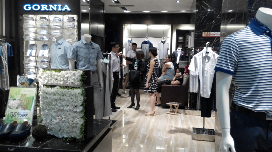 導(dǎo)購(gòu)耐心細(xì)致的為會(huì)員介紹商品面料,幫助會(huì)員們挑選心儀的商品