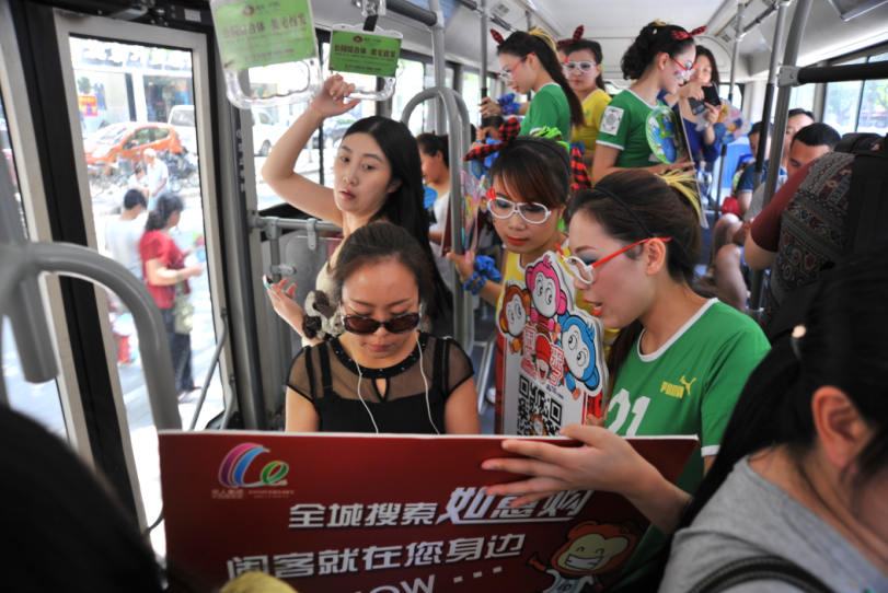 如意美妞們自北國(guó)商城出發(fā)并走上公交車,向石家莊市民展示北人集團(tuán)14周年慶線上線下聯(lián)動(dòng)狂歡驚喜無(wú)限的宣傳語(yǔ),所到之處均引起了市民的驚喜圍觀,大家熱情高漲紛紛拿起手機(jī)拍照、掃碼!