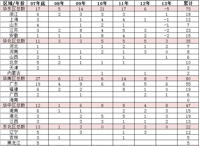 表一:沃爾瑪在大陸市場門店布局(數(shù)據(jù)來源:聯(lián)商網(wǎng))