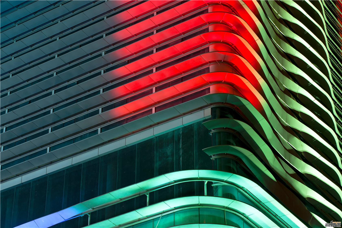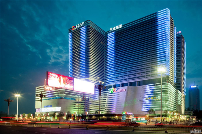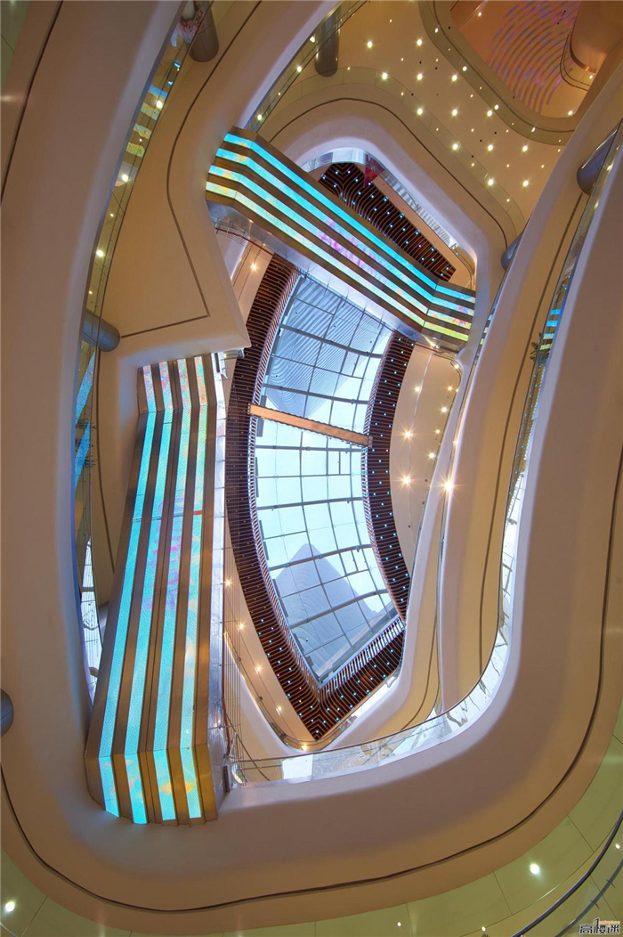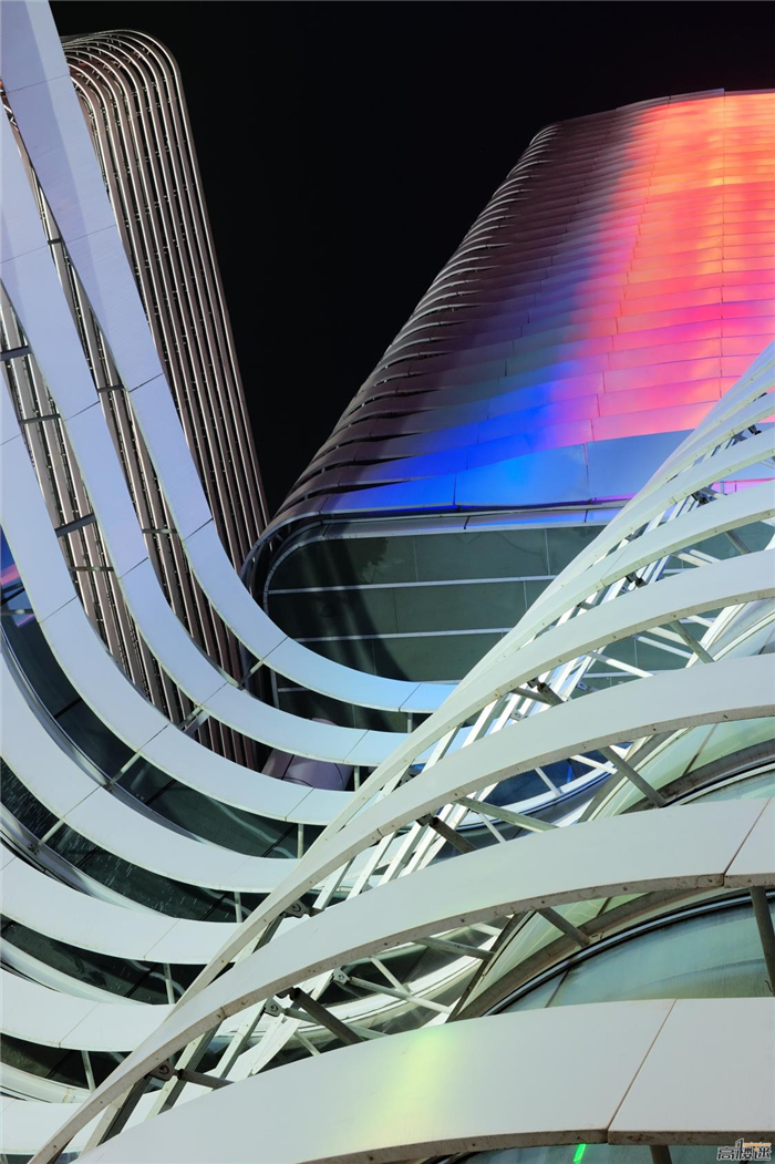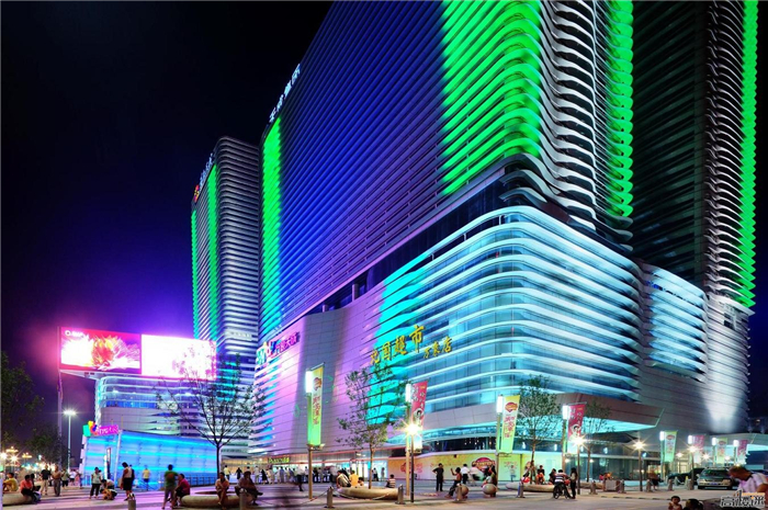 商場外形的設(shè)計(jì)很特別,燈光很耀眼。