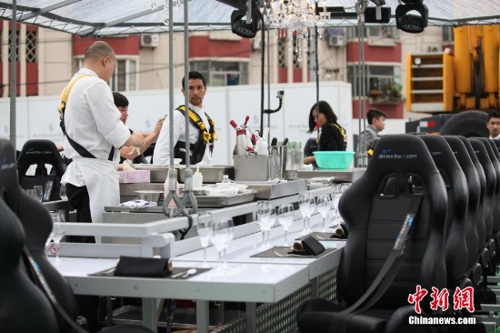 6月27日,一張滿載20多位食客的餐桌在上海陸家嘴升空,開(kāi)啟了滬上食客在50米高空露天懸空吃飯的體驗(yàn)。許多圍觀者驚呼該舉措是“用生命在吃飯”。據(jù)觀察,所有的食客都必須通過(guò)保險(xiǎn)帶牢牢捆綁在椅子上,細(xì)碎的小物件也被要求暫時(shí)寄放在地面,為保證餐具即使掉落也不會(huì)傷到旁人。 據(jù)說(shuō),享受這樣一次餐飲服務(wù)的代價(jià)從1888元到8888元不等。