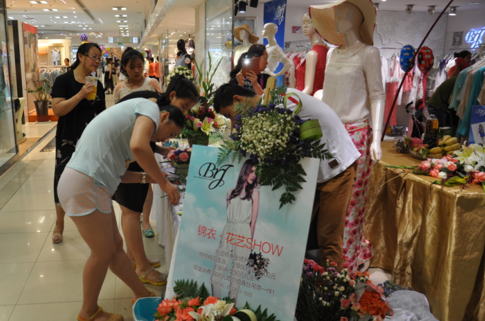 北國商城二層時(shí)尚名媛淑女裝BRJ于6月26日—6月30日舉辦2014年夏季會(huì)員答謝專場(chǎng)活動(dòng);顒(dòng)期間,會(huì)員尊享特供精品皮衣,皮草800-2500元,掃二維碼再享50元禮金,F(xiàn)金消費(fèi)滿3800元贈(zèng)真絲吊帶一件.并且只要是消費(fèi)的會(huì)員還可以現(xiàn)場(chǎng)制作花藝一盆。下面,讓我們到活動(dòng)現(xiàn)場(chǎng)去看一看吧。