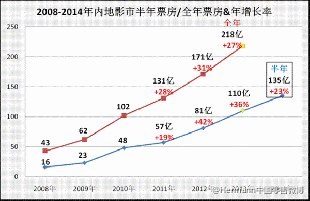 截止6月30日,2014上半年全國電影票房累計(jì)約135億,較2013前半年的110億增長近23%。其中,國產(chǎn)片票房總計(jì)約65億,占比48%,暫輸給了進(jìn)口片。前半年上映的150多部新片中票房過億電影31部(國產(chǎn)14部,進(jìn)口17部),累計(jì)票房近115億,占比超過85%。