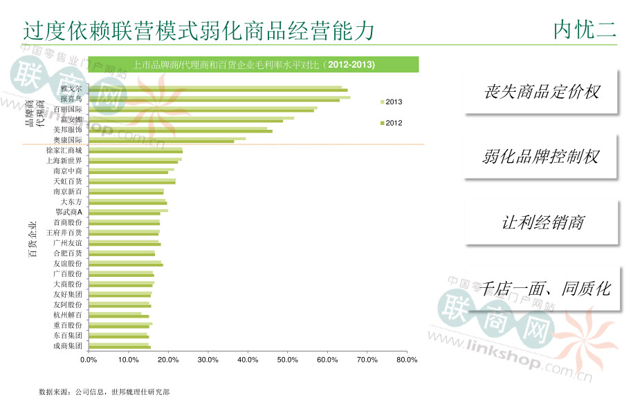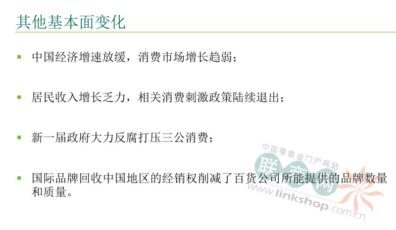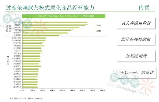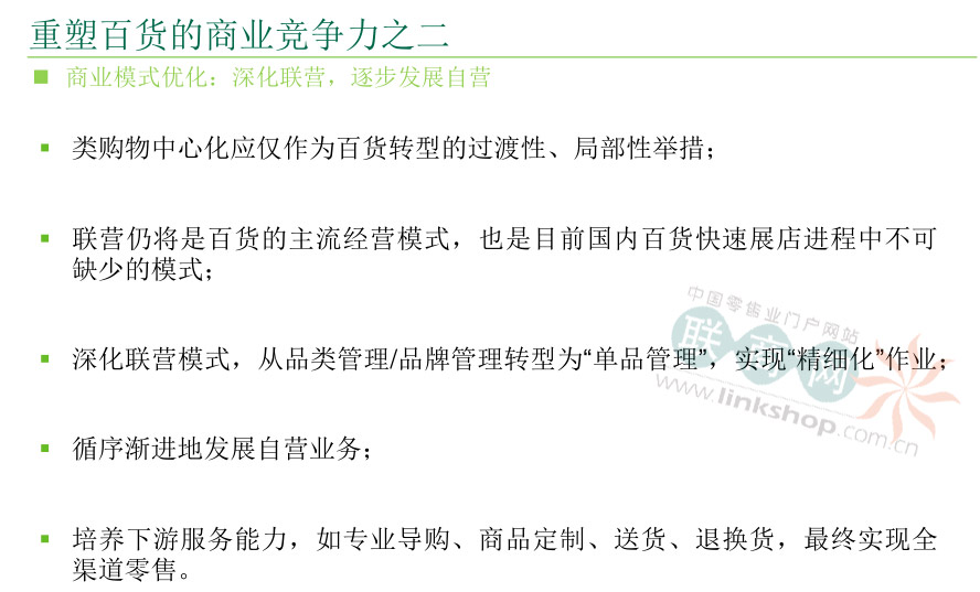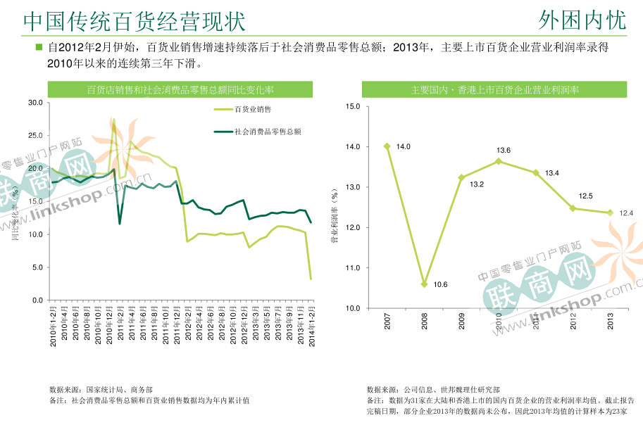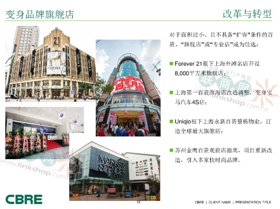 聯(lián)商網(wǎng)消息:世邦魏理仕(CBRE)今日發(fā)布《演變中的中國(guó)零售業(yè)格局》系列報(bào)告之二——百貨商店的發(fā)展趨勢(shì)。作為一種傳統(tǒng)的零售渠道,百貨曾經(jīng)是中國(guó)國(guó)民記憶中關(guān)于消費(fèi)最“高、大、尚”的具象化。然而在過(guò)去的幾年,國(guó)內(nèi)百貨業(yè)風(fēng)光不再:銷售增長(zhǎng)疲態(tài)盡顯,而利潤(rùn)水平每況愈下。而面臨困境和挑戰(zhàn),百貨正在商場(chǎng)環(huán)境、商品服務(wù)組合、經(jīng)營(yíng)模式、房地產(chǎn)策略、新技術(shù)應(yīng)用等多個(gè)方面謀求轉(zhuǎn)型和突破。