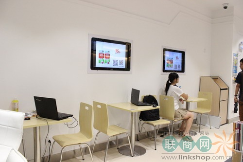 (天虹“微喔”的掃碼購電子屏,顧客也可在店內(nèi)使用WIFI)