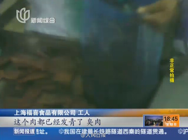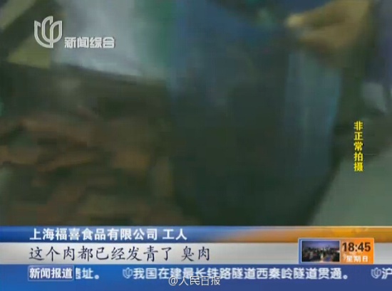 據(jù)上海電視臺(tái),麥當(dāng)勞、肯德基等公司的全球合作伙伴上海福喜公司,將大量過期半個(gè)月的雞皮、雞胸肉等原料,碾碎再加工;而發(fā)綠、發(fā)臭的冷凍小牛排過期一年再加工。記者臥底到工廠調(diào)查多月,發(fā)現(xiàn)的真相讓人觸目驚心。