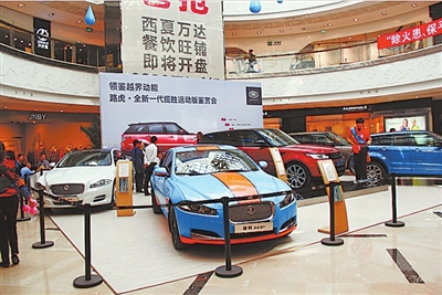 西夏萬達廣場中庭舉辦的車展。