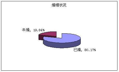 在統(tǒng)計的318人結(jié)婚,占到80.17%,未婚的有76人,占到19.84%,其中男店長未婚有51人,女店長中有25人。