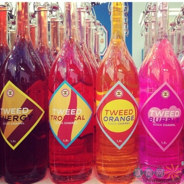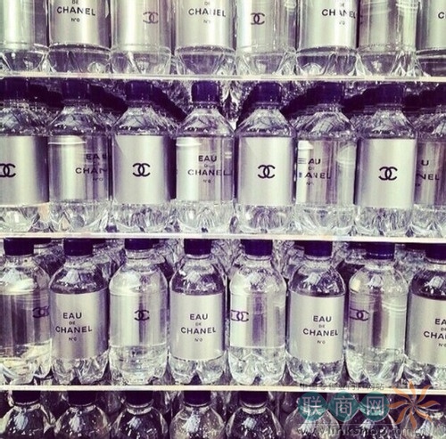 里面擺滿了印有Chanel標(biāo)志的日用品,飲品和食物,從手推車(chē)到購(gòu)物欄都透露著小香的氣質(zhì)。