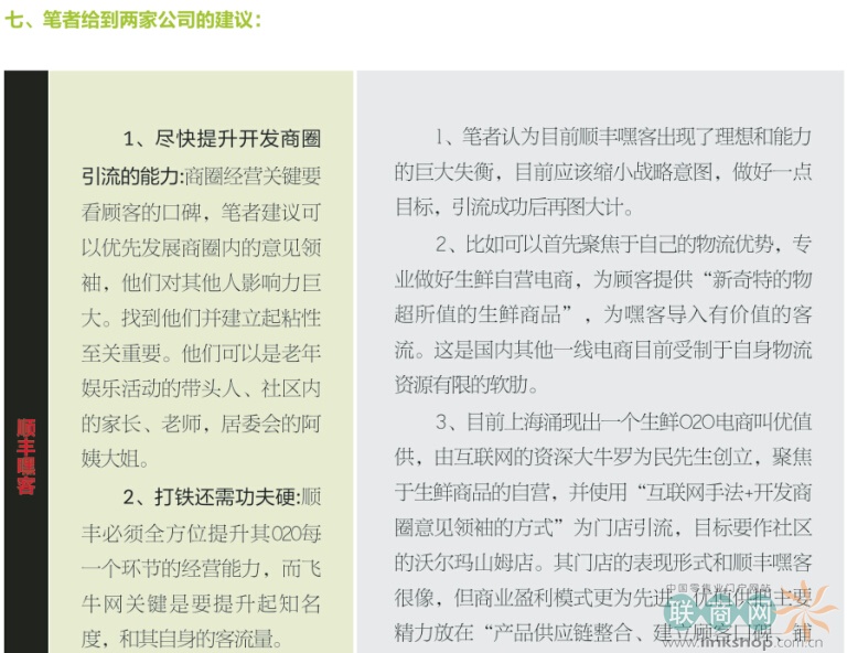 筆者特意去體驗了上海多家順豐嘿客和飛牛網(wǎng)喜士多體驗店。發(fā)現(xiàn)他們的前生不同,企業(yè)DNA不同,戰(zhàn)略意圖不同,定位不同,功能不同,目標(biāo)不同,實現(xiàn)目標(biāo)的能力也不盡相同,都面臨著巨大的挑戰(zhàn)。筆者認(rèn)為在短期內(nèi)飛牛網(wǎng)喜士多體驗店更容易取得成功,而順豐嘿客還在積極的探索試錯模式中,未可定論。