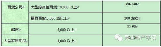 承租大面積的商戶一般是主力商戶,例如超市,承受租金單價較低;而承租小面積單位的租金單價較高。