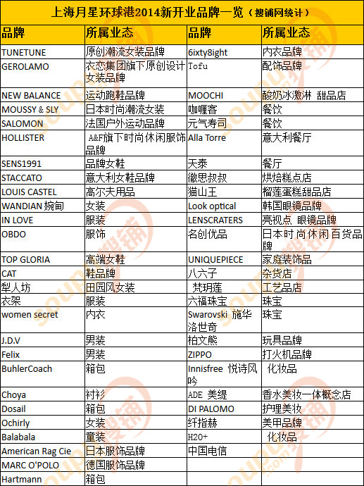 聯(lián)商網(wǎng)消息:近日,搜鋪網(wǎng)駐上海記者實地探訪開業(yè)快滿一年(9.15)的上海月星環(huán)球港,發(fā)現(xiàn)眾多新進駐的品牌及正在圍擋裝修的新品牌,搜鋪網(wǎng)特據(jù)相關(guān)新進品牌情況整理出上海月星環(huán)球港的品牌調(diào)整表(如下)。