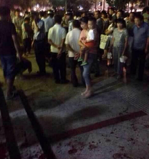 亮點(diǎn)是抱孩子的年輕媽媽,都快踩到人血上去了,就這么好看?
