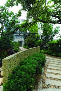 金虹橋國際中心商業(yè)部分是真正意義上的花園式購物中心,采用立體造園手法,整個商場呈現(xiàn)出的是一個層層疊疊的階梯形花園,各種植物鮮花遍布于商場的每個角落,在3、4、5層開放的屋頂花園,設(shè)計師著力營造“移步易景”的園林景觀,潺潺流水在樹木花卉間流淌,幽靜的山間小道錯落有致。