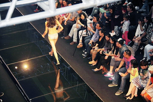 2014年9月13日,鄭州一家購物中心舉行內(nèi)衣時裝秀,近千名市民圍觀。