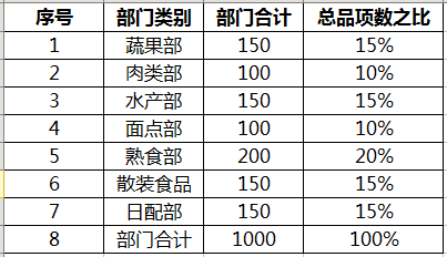 2、大型超市生鮮區(qū)商品結(jié)構(gòu)數(shù)據(jù)參考表