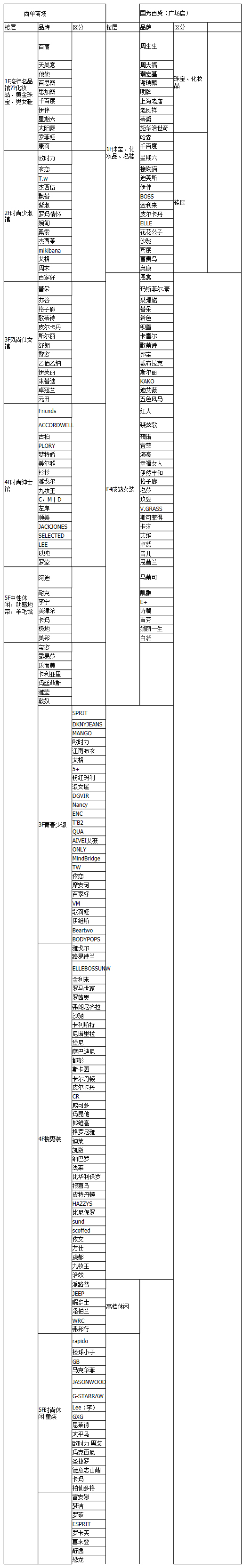 蘭州百貨商場品牌統(tǒng)計(jì)(二)