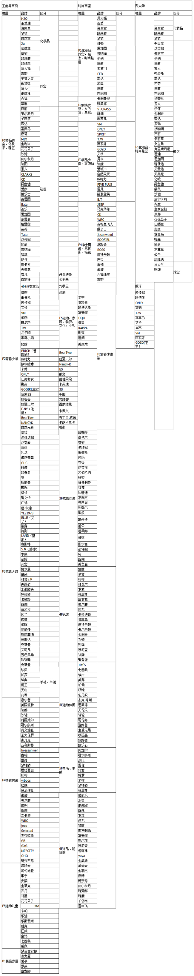 蘭州百貨商場(chǎng)品牌統(tǒng)計(jì)(一)