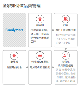 資訊部在每家店都鋪設(shè)了IT系統(tǒng),并培訓(xùn)每家店的店長(zhǎng)、店員,每天把當(dāng)天銷售數(shù)據(jù)傳送到總部。這些數(shù)據(jù)不只是單日收入一項(xiàng)指標(biāo),它包括橫向銷售額“1至2時(shí)銷售額多少,2至3時(shí)銷售額多少等等”,縱向品類“鮮食類當(dāng)天售出多少錢,飲料類多少錢”,再細(xì)化到“可口可樂多少錢、百事多少錢”,再跟時(shí)間交叉“1至2時(shí)可口可樂賣了多少錢,百事可樂賣了多少錢”……數(shù)據(jù)每天上傳,當(dāng)天值班的店員工作才算結(jié)束。