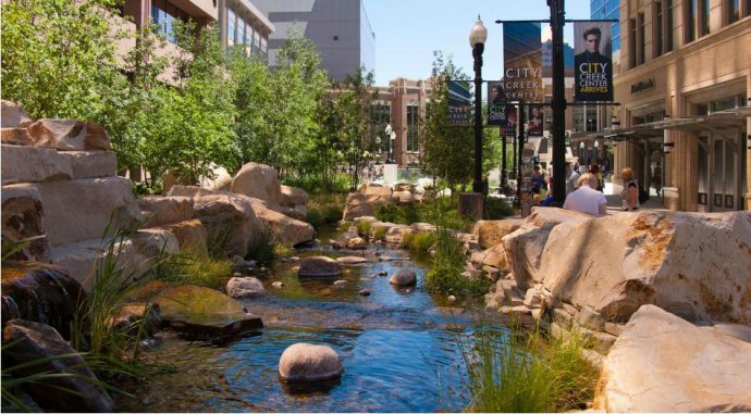 在植物的選擇上,應(yīng)該選用產(chǎn)生不通顏色、質(zhì)地、高度和陰影變化的植物,產(chǎn)生豐富和明亮的色彩,令購(gòu)物者心情愉悅?梢允褂酶哌_(dá)濃密的樹木,形成購(gòu)物者休息的綠洲般的環(huán)境。
