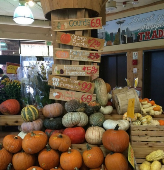 試吃臺的店員也一直邀請顧客來試吃,并不斷的介紹試吃商品是南瓜為主要原料做。(10月底是萬圣節(jié),南瓜是主要的節(jié)日題材和商品)