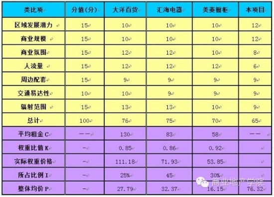 由于其余商業(yè)所調研租金皆包含管理費用,因此,按市場比較法測算數(shù)據,本項目租金水平為76元/月/㎡,含物業(yè)費,管理費,水電費,空調費。