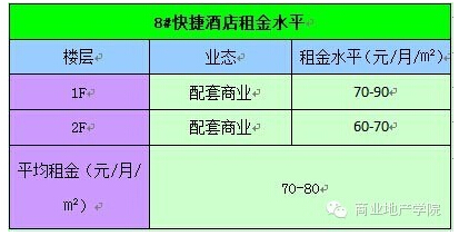 根據項目商業(yè)部分8000元/㎡的平均銷售標準,以8%的回報率測算,本項目租金標準應為: 8000×8%÷12≈54元/㎡/月