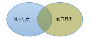 我所接觸的企業(yè)線下的,線上的都有。一家企業(yè)即搞線下商超又涉足電商的企業(yè)也有。我認(rèn)為,最大的一個(gè)分歧點(diǎn)還是在品類上,要處理好線下線上的關(guān)系,也得從品類上著手。我們先籠統(tǒng)的來分一下,假如線下線上的品類存在以下的關(guān)系。